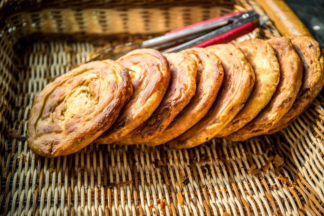 用面粉、沙葱、牛肉馅做成的沙葱牛肉饼,外皮酥脆,肉馅鲜美,只一口就能征服食客的心。
