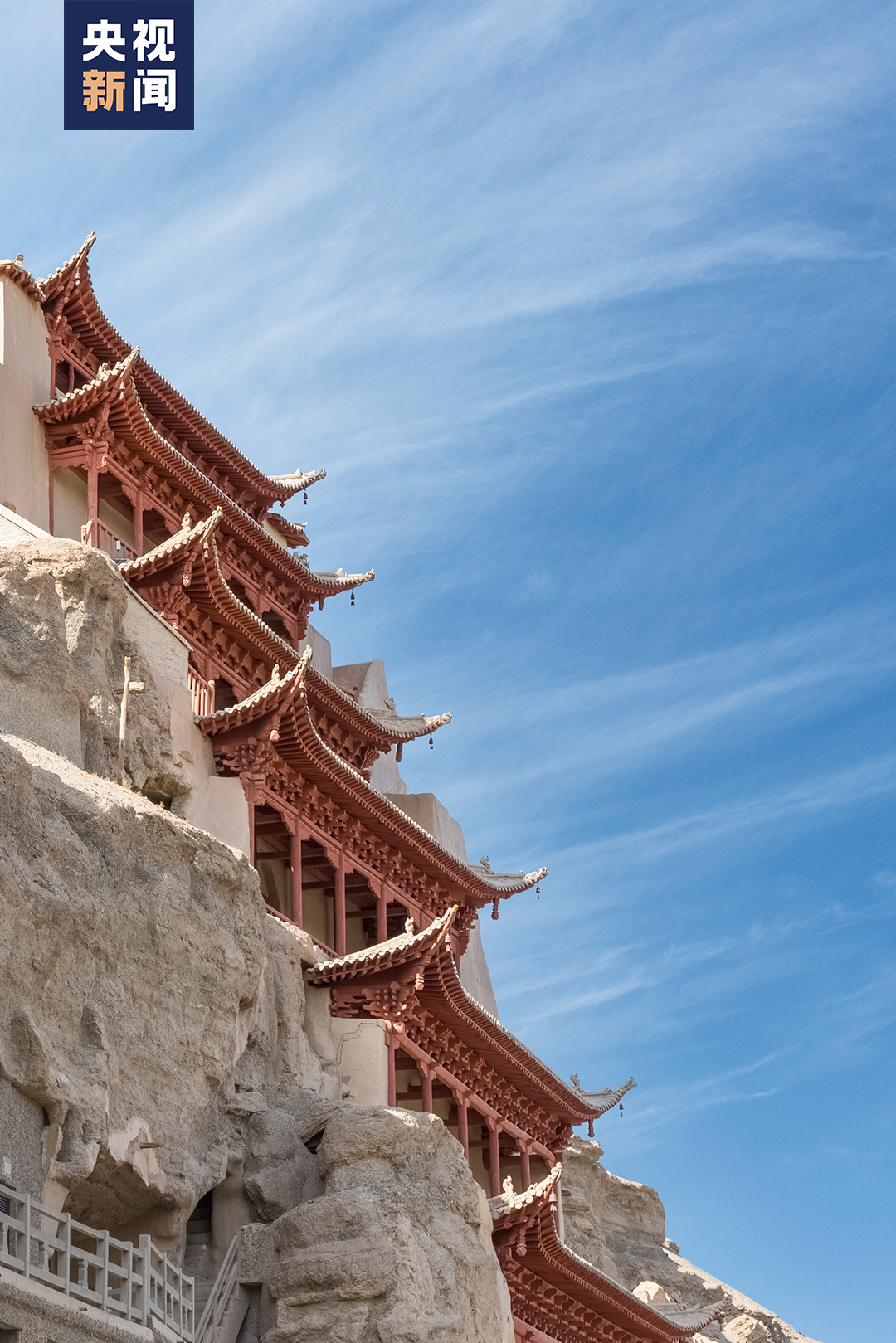 莫高窟保存了735个洞窟、4.5万多平方米的壁画、2000余尊泥质彩塑,规模最大的洞窟占地268平方米,规模最小的高度还不足一尺。