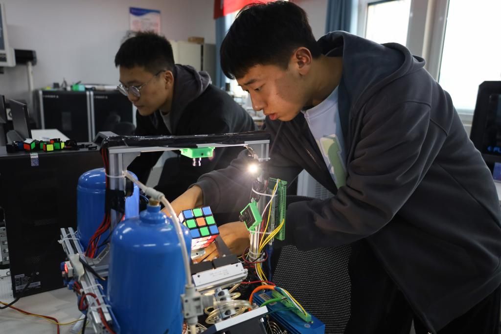 10月17日,在甘肃省兰州新区科教园区,兰州石化职业技术大学汽车工程学院的学生进行创新操作课程。新华社记者 马希平 摄