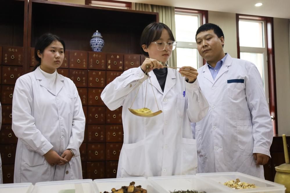 10月17日,在甘肃省兰州新区科教园区,甘肃省卫生职业学院中医药学院的学生在中药调剂实训室进行实训课程。新华社记者 马希平 摄