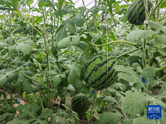 深秋的清晨,河西走廊的大地落下一层霜花。在甘肃省武威市凉州区的一处瓜棚,气温却犹如夏日。只见棚内瓜蔓葱茏,一颗颗滚圆翠绿的小西瓜悬吊在瓜蔓上,错落有致。