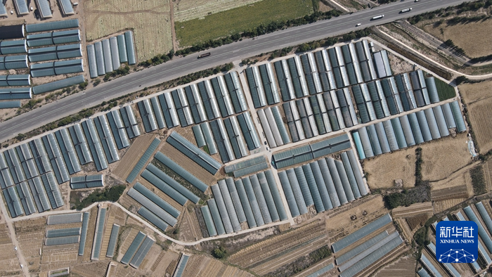 这是在甘肃省武威市凉州区发放镇贾家墩村拍摄的温室大棚(无人机照片)。新华社记者王朋 摄