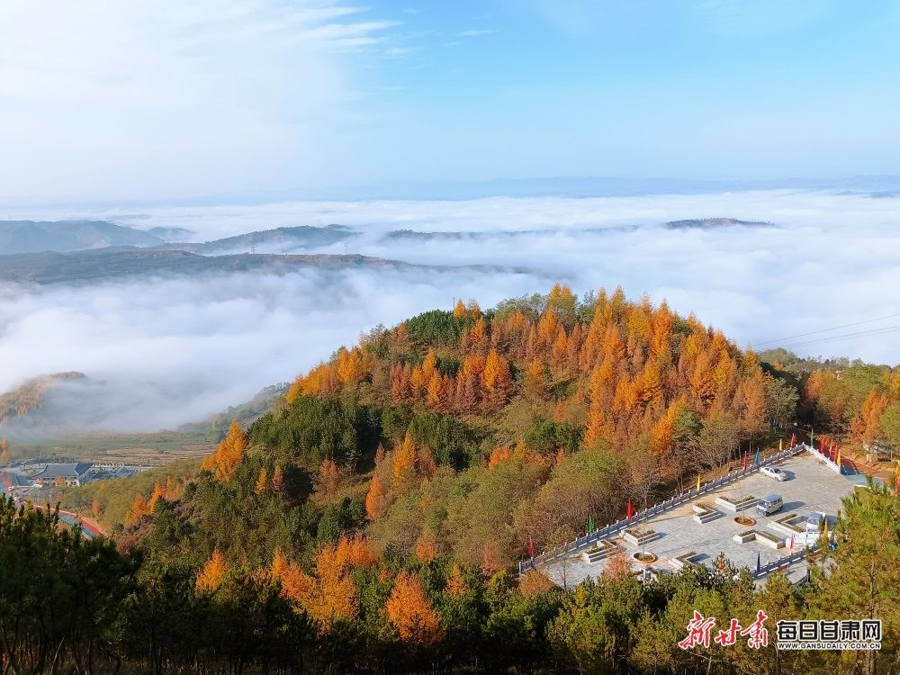 金秋时节,登上西和云华山峰顶,举目四顾,漫山红遍,丹岩如霞,蔚为壮观,让人如临缥缈仙境。俯瞰山下,红叶点缀于苍松翠柏之间,美不胜收,令人陶醉。