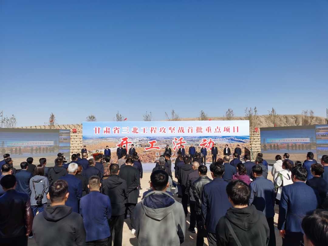 10月31日,甘肃省委、省政府以视频形式举行“三北”工程攻坚战首批重点项目开工活动,在庆阳市环县设立主会场,同时在项目涉及到的兰州、金昌、酒泉、张掖、武威五个市设分会场。甘肃此次首批开工项目13个,总投资73.88亿元,今明两年规划建设任务1025万亩,其中新建253万亩,成果巩固772万亩。