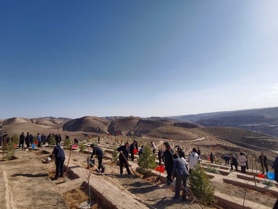 甘肃干部群众在庆阳市环县山城乡山城堡村植树造林。