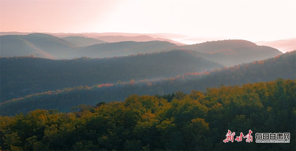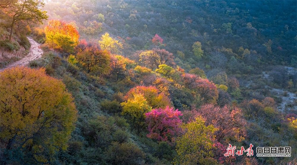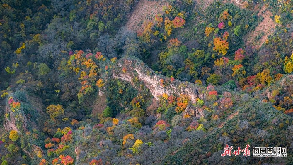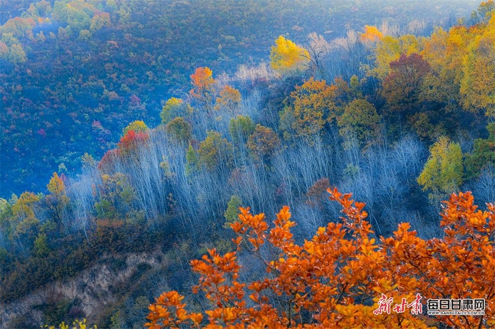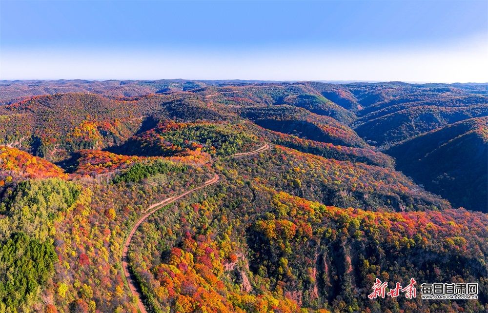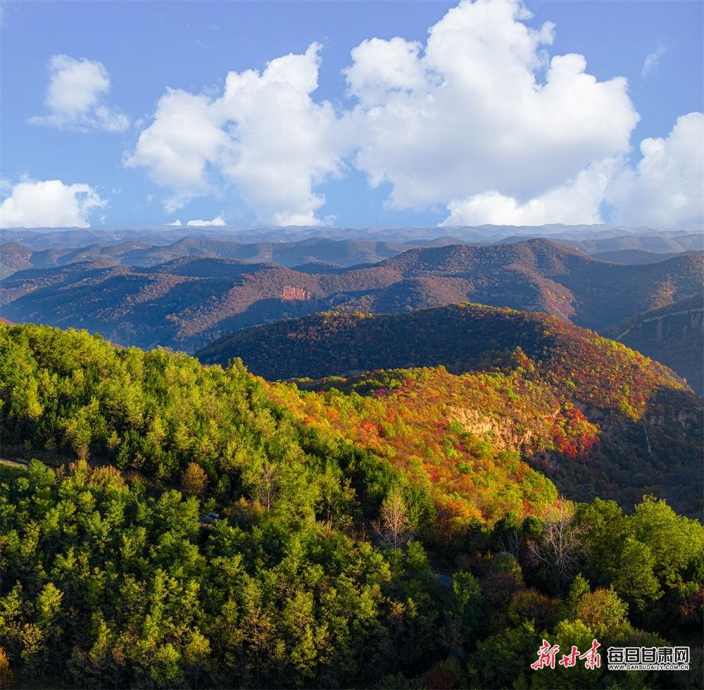 金秋时节,合水子午岭绵延的青山层林尽染,金黄、殷红、墨绿的色块相映成辉。漫山遍野的红叶尽情渲染着秋的热烈,如诗如画,美不胜收,让人流连忘返。