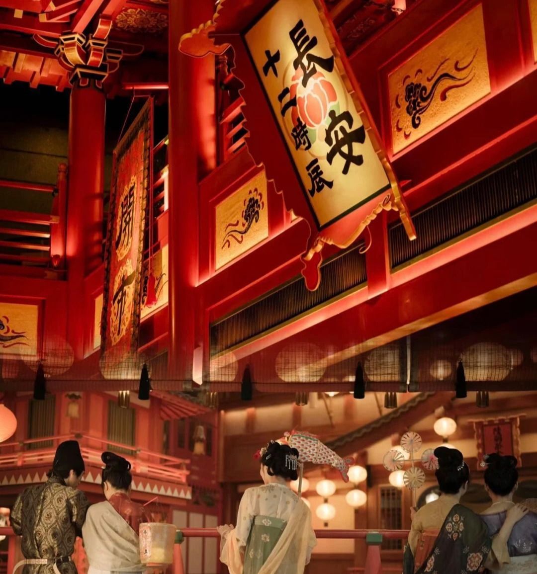 作为文化地标之一的大唐不夜城,便是Citywalk的最好选择。一眼望去,飞檐斗拱、层楼叠榭、流光溢彩,曾经那个路不拾遗的大唐盛世跃入眼帘,行人熙熙攘攘、摩肩接踵。中轴景观大道太宗李世民身跨战马,高耸的青铜雕像矗立正中,脚下秦兵威风凛凛策马前行,正是这开元盛世孕育出了房谋杜断、李杜诗篇万口传这样的名臣墨客,便有了“人生得意须尽欢,莫使金樽空对月”千古绝句,也曾记得就是这样繁华梦幻的夜晚,太平公主揭下了薛绍的面具,成就那魂牵梦绕的一抹情愫到终。
