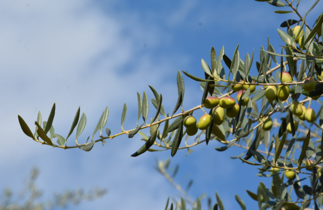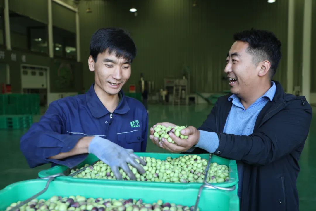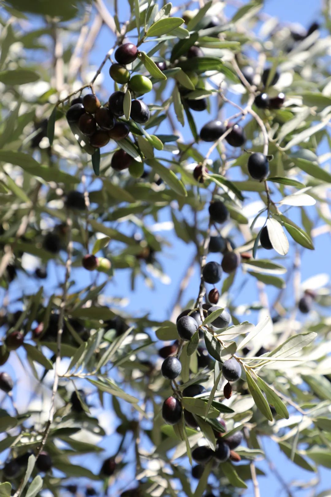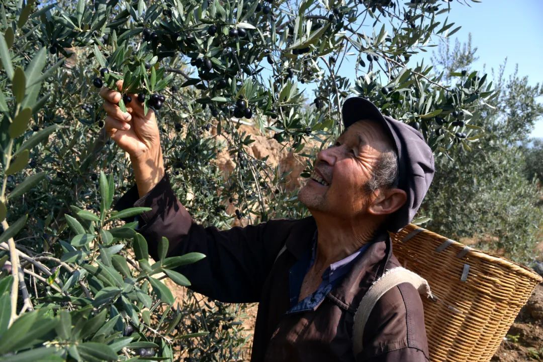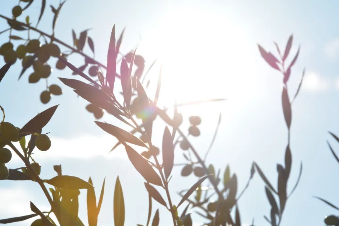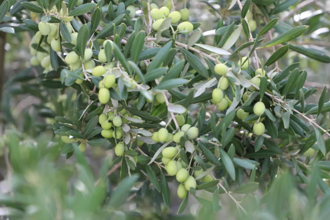 蓝天下成千上万棵油橄榄树 氤氲出浓郁的“橄榄绿” 层层叶片间的橄榄果 肆意享受着“日光浴”