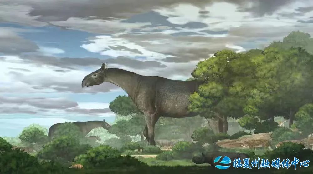临夏巨犀在渐新世晚期的生态复原图。陈瑜绘,中科院古脊椎所供图