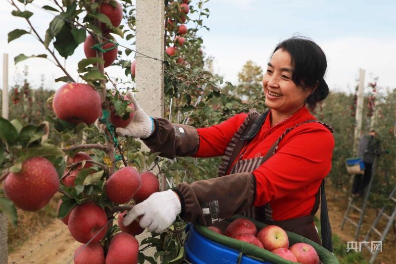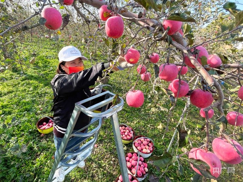 庆阳宁县米桥镇果农正在采摘苹果(央广网发 胡蕊 摄)