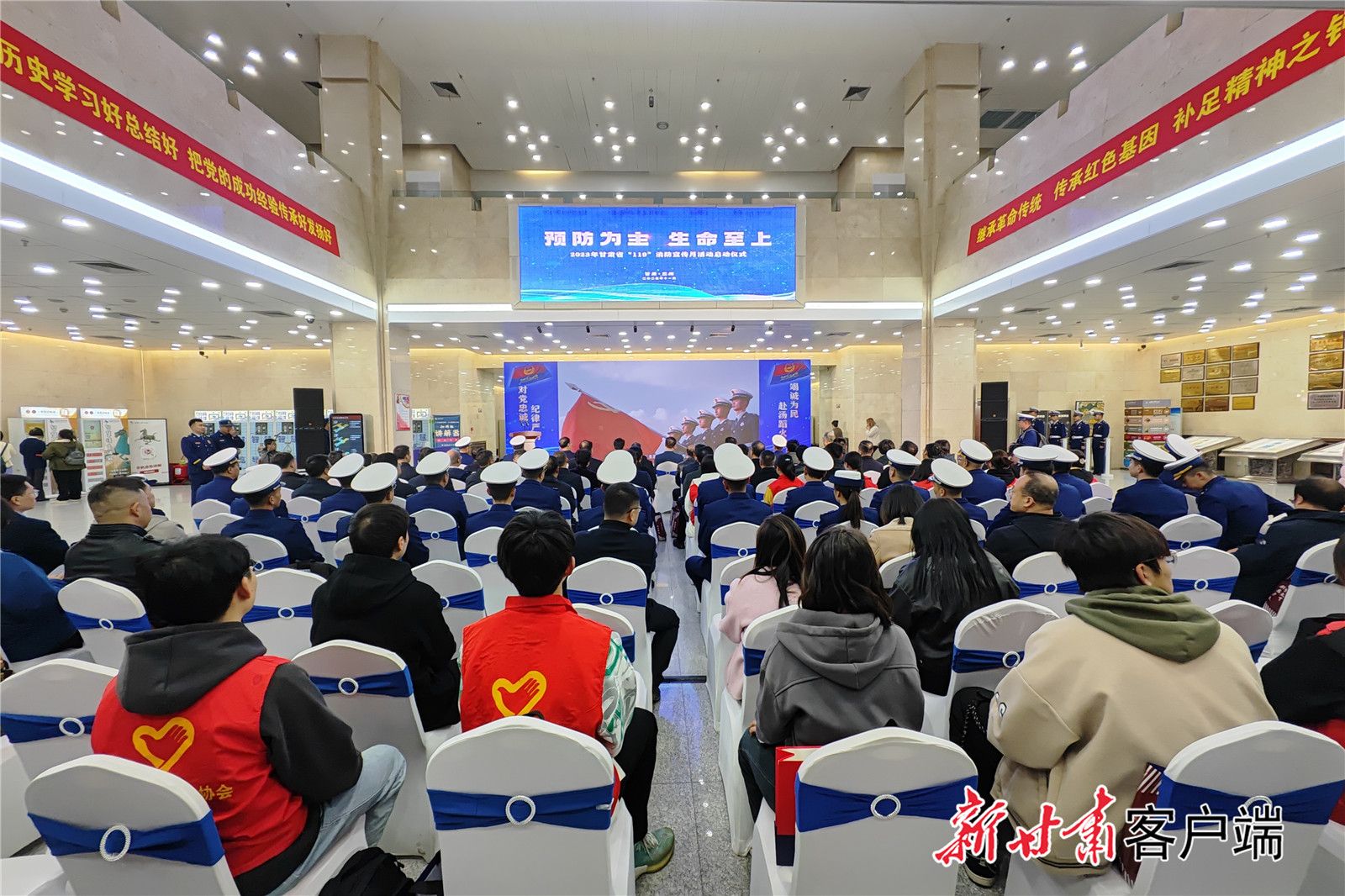 今天(11月8日)上午,甘肃省2023年“119”消防宣传月活动启动仪式在甘肃省博物馆举行。启动仪式上,“甘肃消防这五年”——践行习近平总书记重要训词精神五周年成果展揭幕,与会人员和现场群众共同参观了成果展。