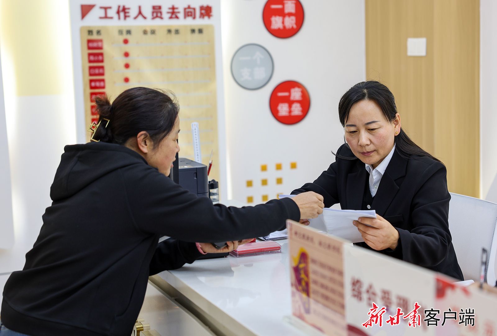 平凉市崆峒区东关街道解放中路社区工作人员为群众办理业务。新甘肃·甘肃日报记者 冯乐凯 摄