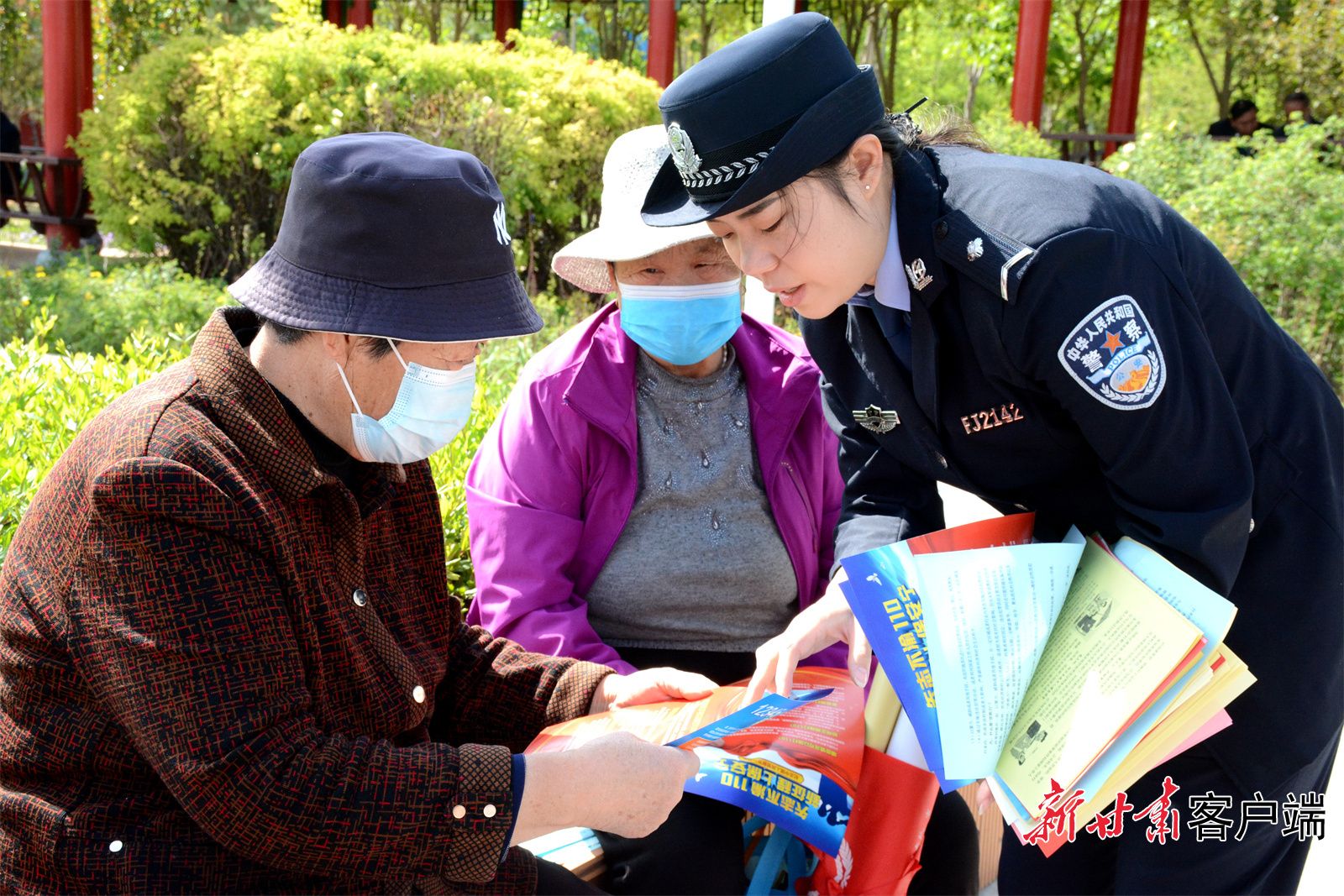 武威市公安局凉州分局民警向辖区群众开展反电信诈骗宣传活动。新甘肃·甘肃日报记者 金奉乾 摄