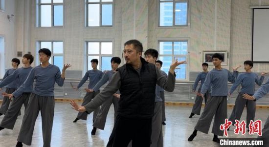 3月上旬,黎明东正在进行敦煌舞男班课程教学现场。王牧雨 摄
