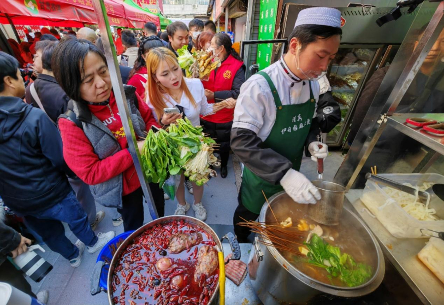 这是“热辣滚烫”的天水麻辣烫。(新华网 发)