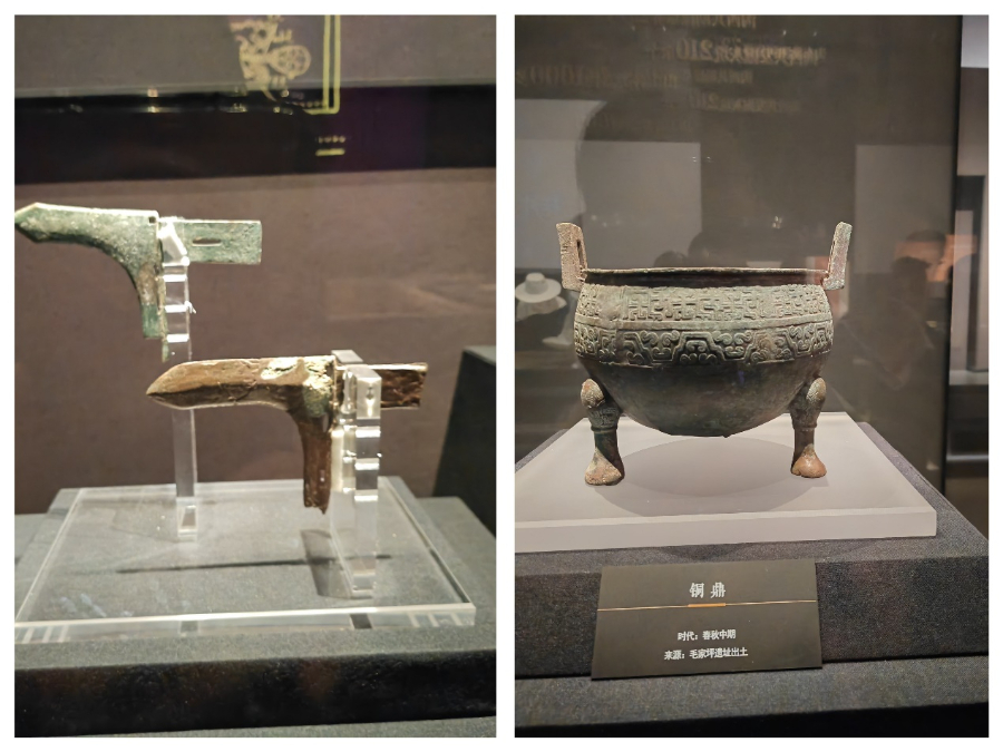 这是天水市甘谷县出土的秦人使用过的戈和鼎。(新华社记者 张钦 摄)