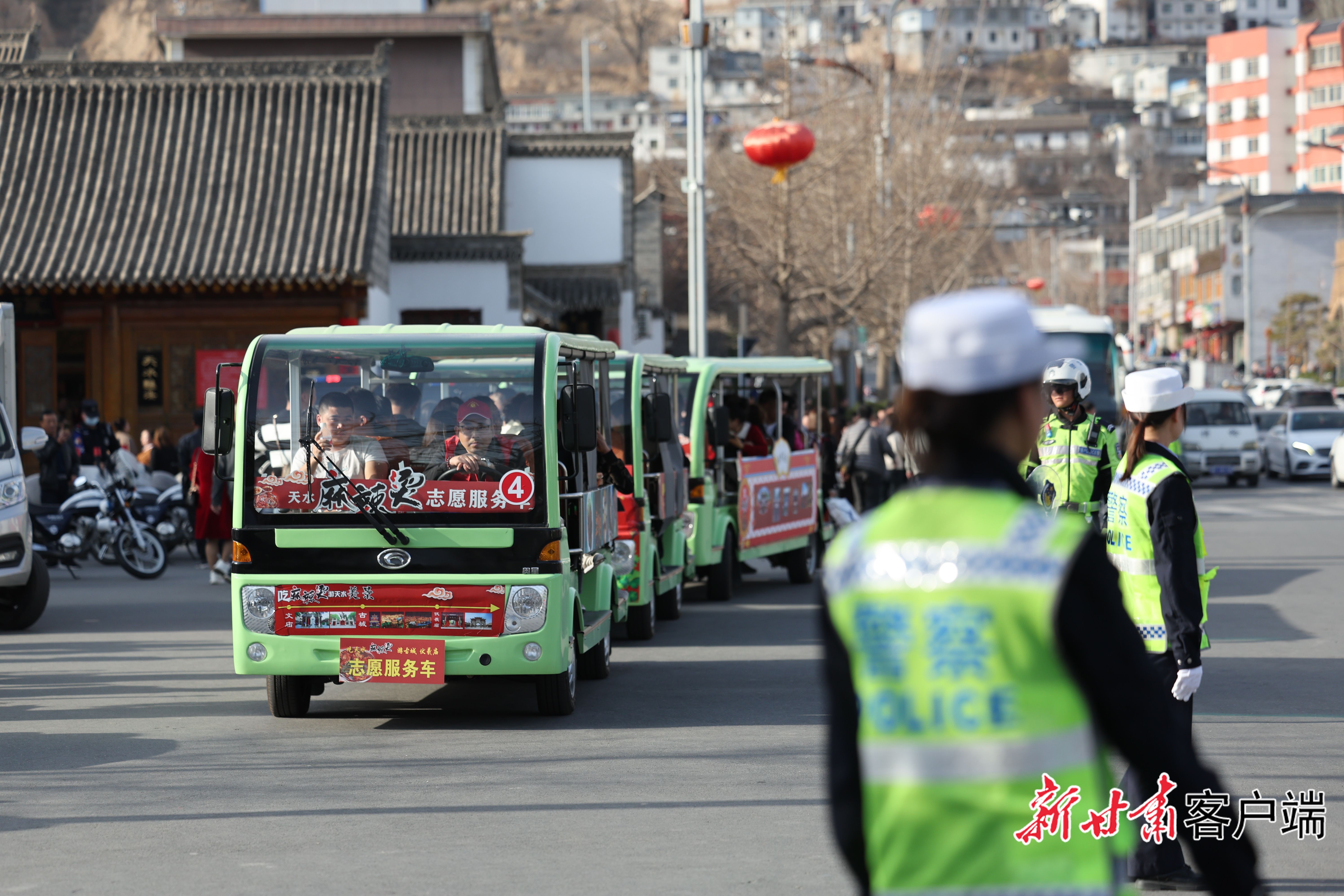 为赶高铁的游客协调车辆;通过对讲机系统为外地车辆寻找就近停车位;为问路的游客指引路线;开通公安交警24小时服务热线电话……天水公安交警实施了疏堵保畅、温馨导航、便捷停车、绿色通道、事故快处等一系列暖心举措,为居民游客提供细致周到的服务。