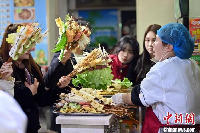 3月14日,游客挑选的“麻辣烫花束”。九美旦增 摄