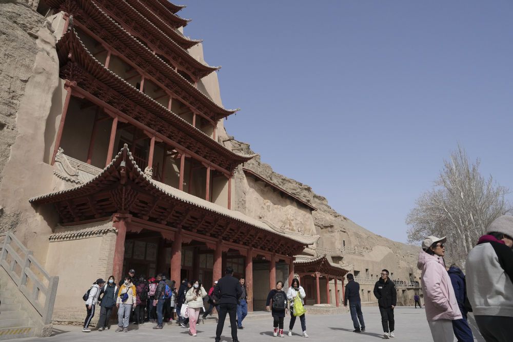 游客在世界文化遗产地莫高窟参观(3月16日摄)。新华社记者 张智敏 摄