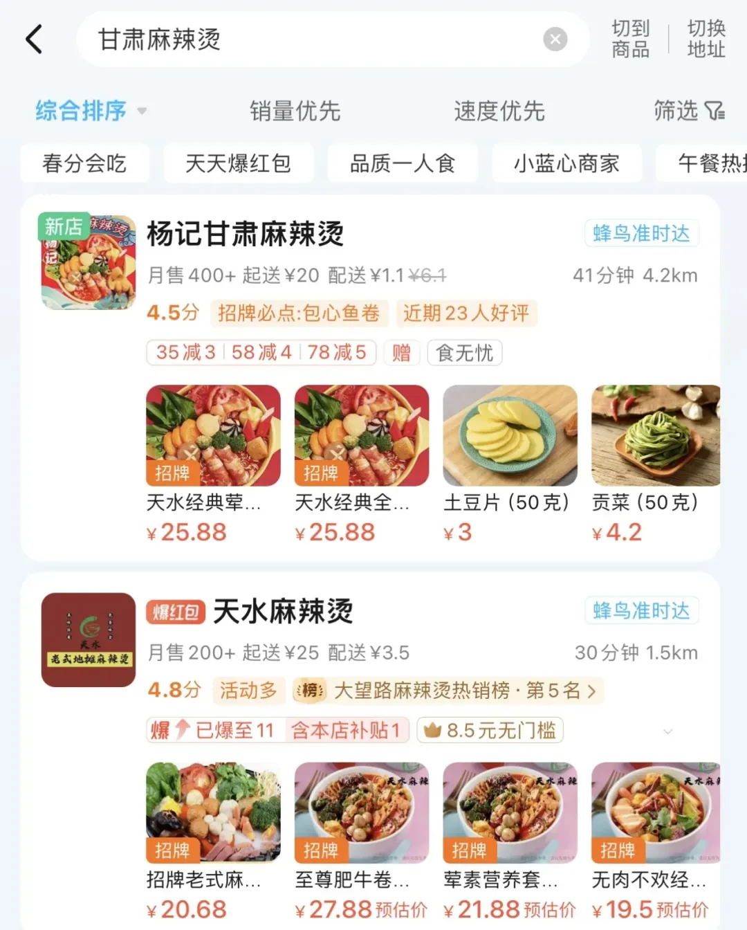 连外卖平台的麻辣烫小档口,也摇身一变带上了“甘肃天水”的标签。