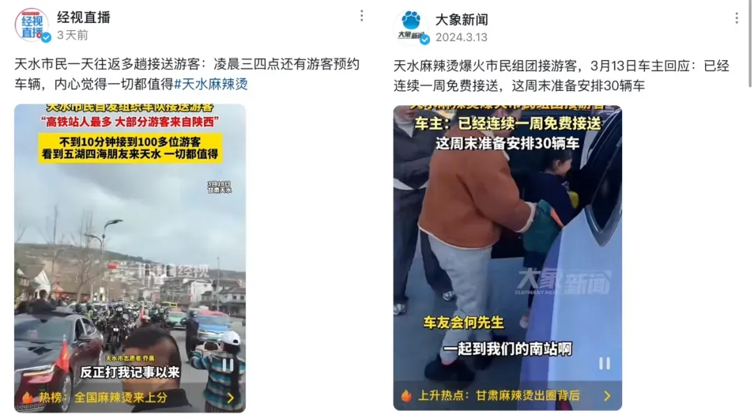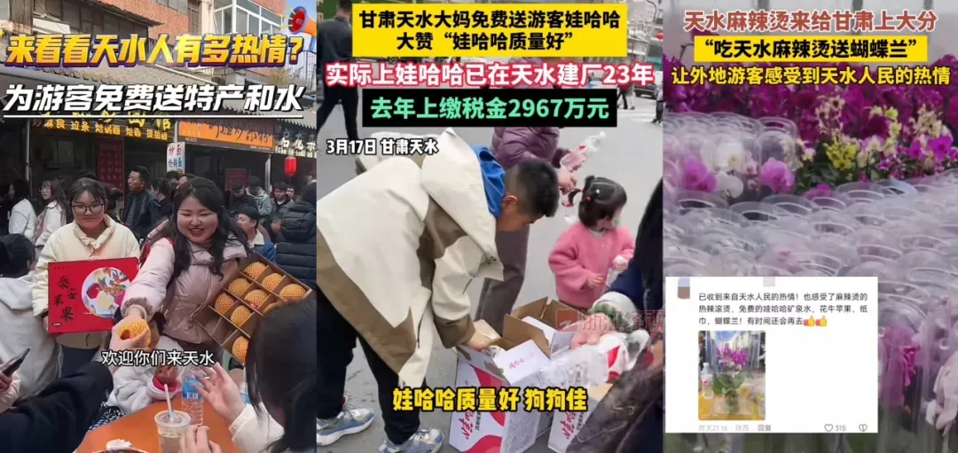 有淄博、尔滨等网红城市做样板,当天水麻辣烫忽然火出圈后,天水也跟着迅速跟着前辈的经验积极响应。