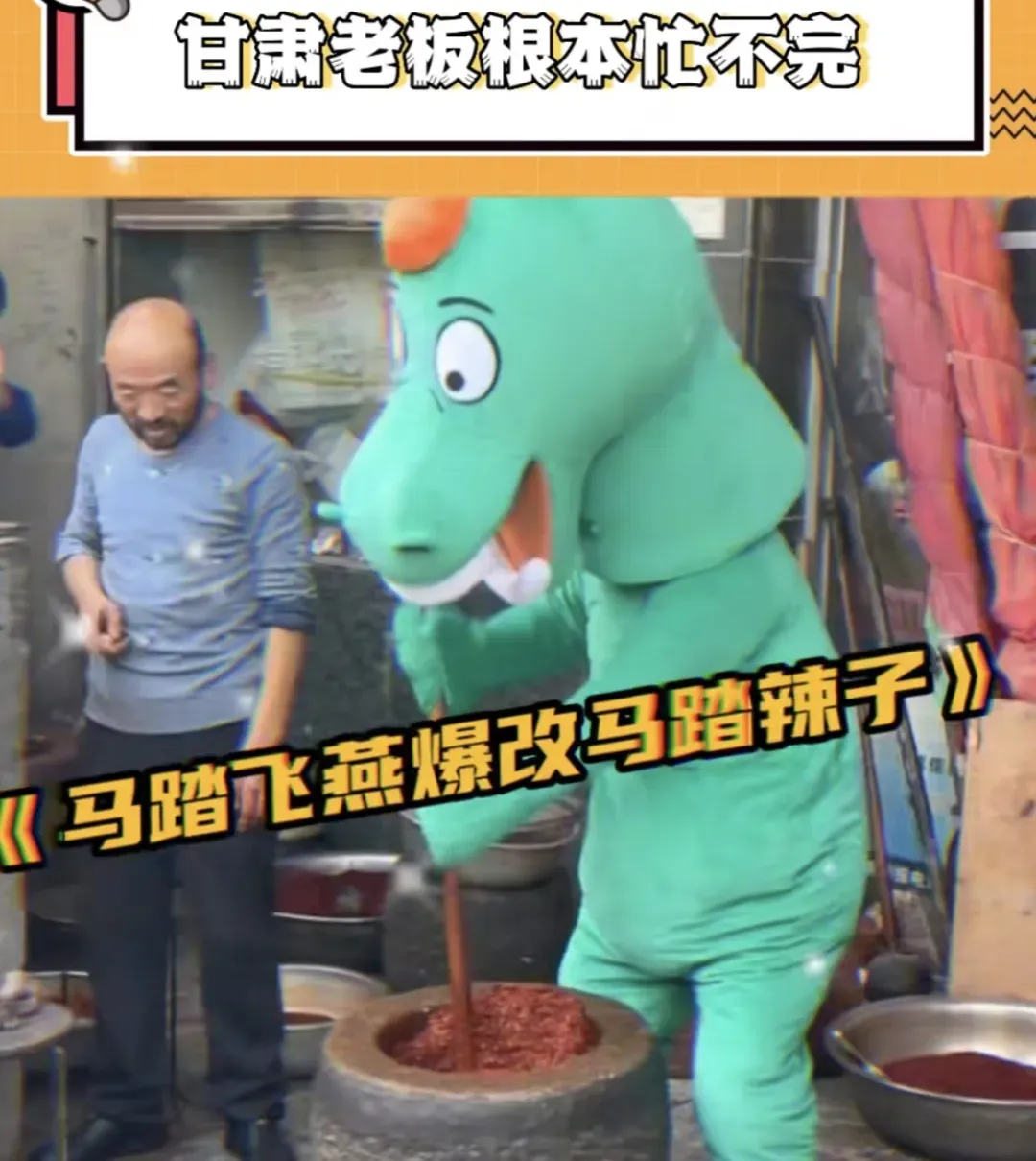 连武威雷台汉墓出土的中国旅游标志马踏飞燕,都跑去帮麻辣烫店的老板捣辣子了。