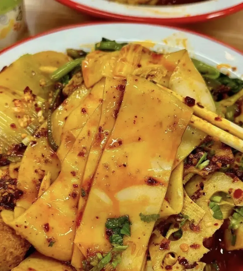 如果硬要从现有的麻辣烫体系中,选出一个天水麻辣烫的对标。那相比必备麻酱的东北版黏糊麻辣烫,甘肃麻辣烫或许更偏向川渝风味。
