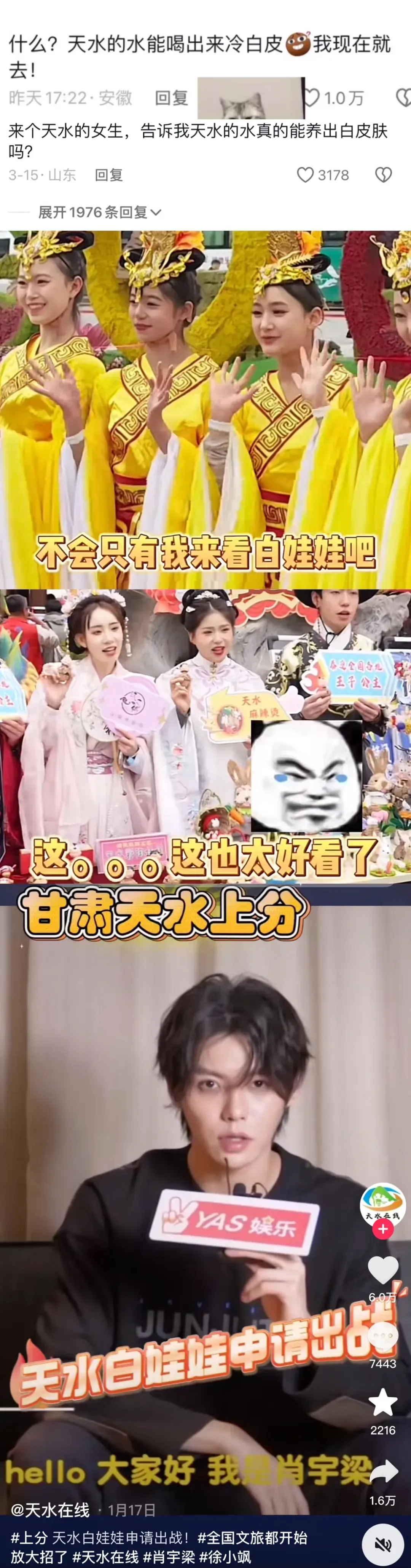 除了这些,目前最让外地人心动的,据说是天水的水能喝出冷白皮这件事。