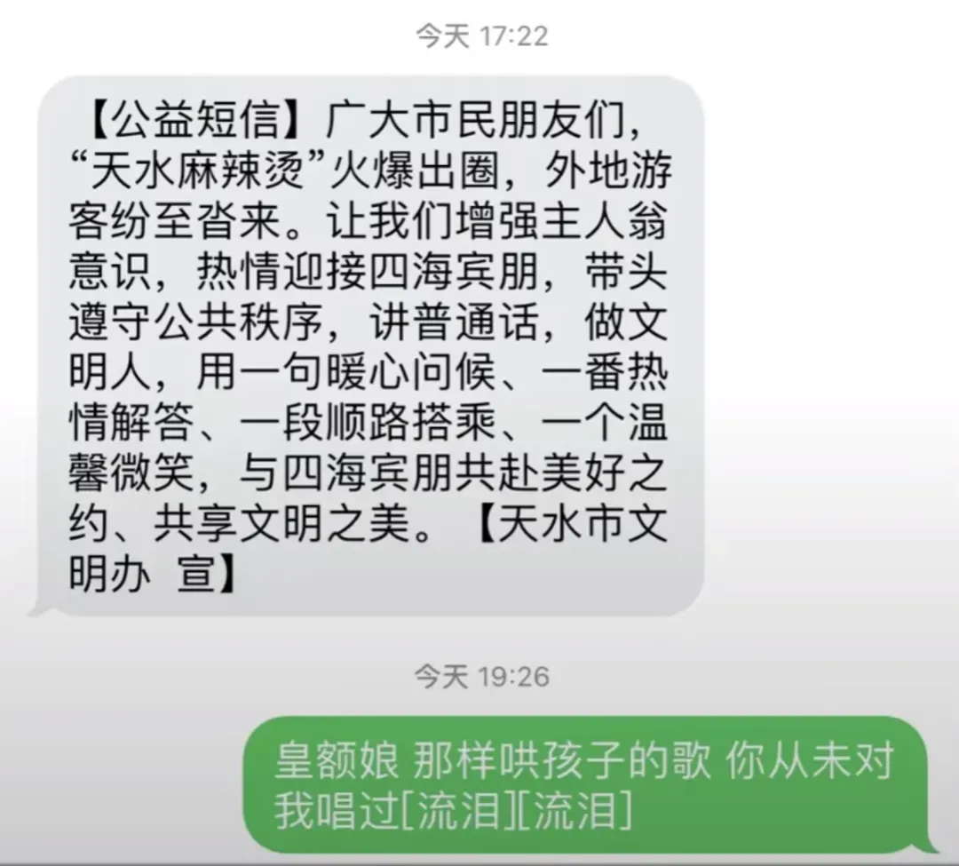当天水市文明办的短信,在每一个天水本地人的手机里响起。