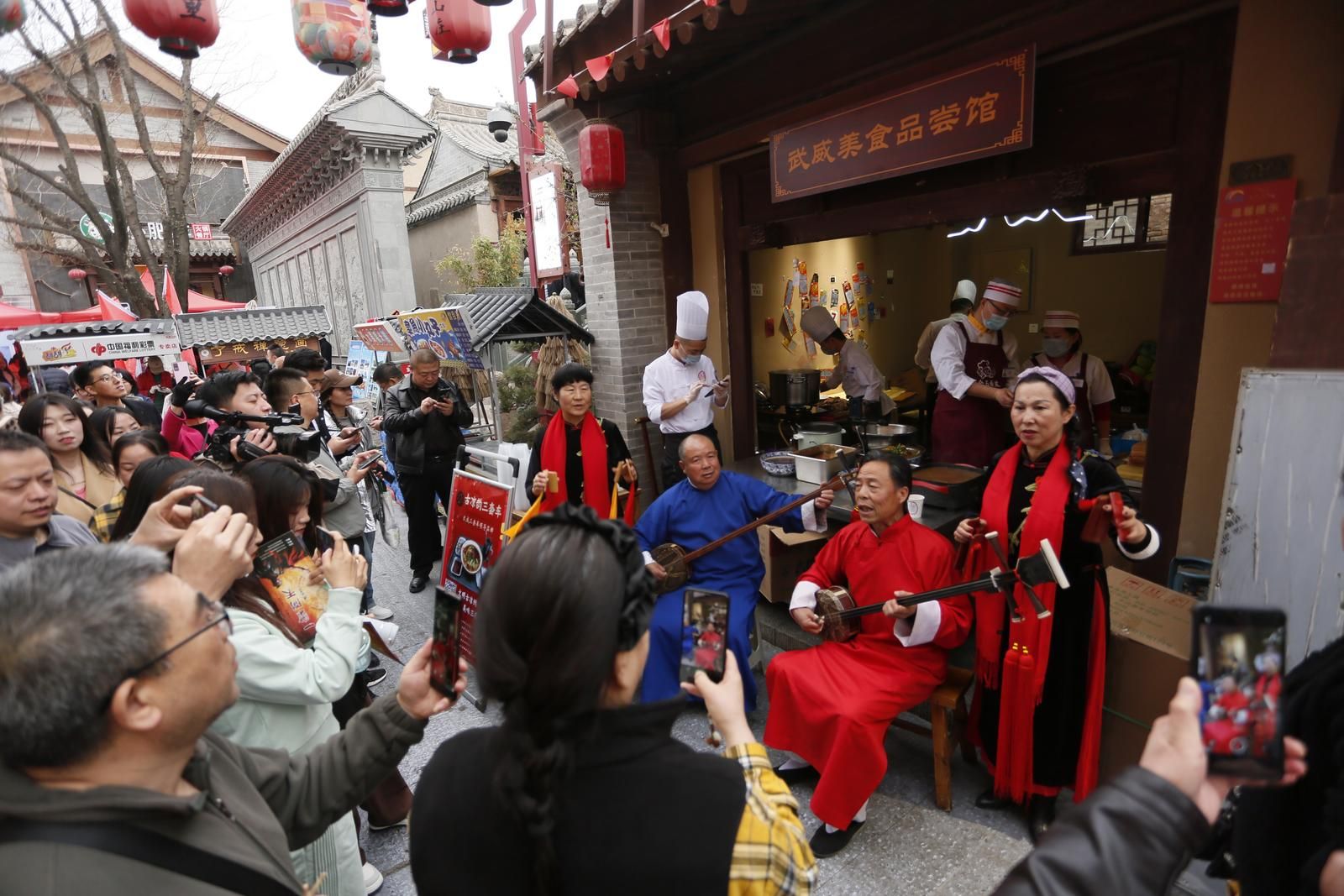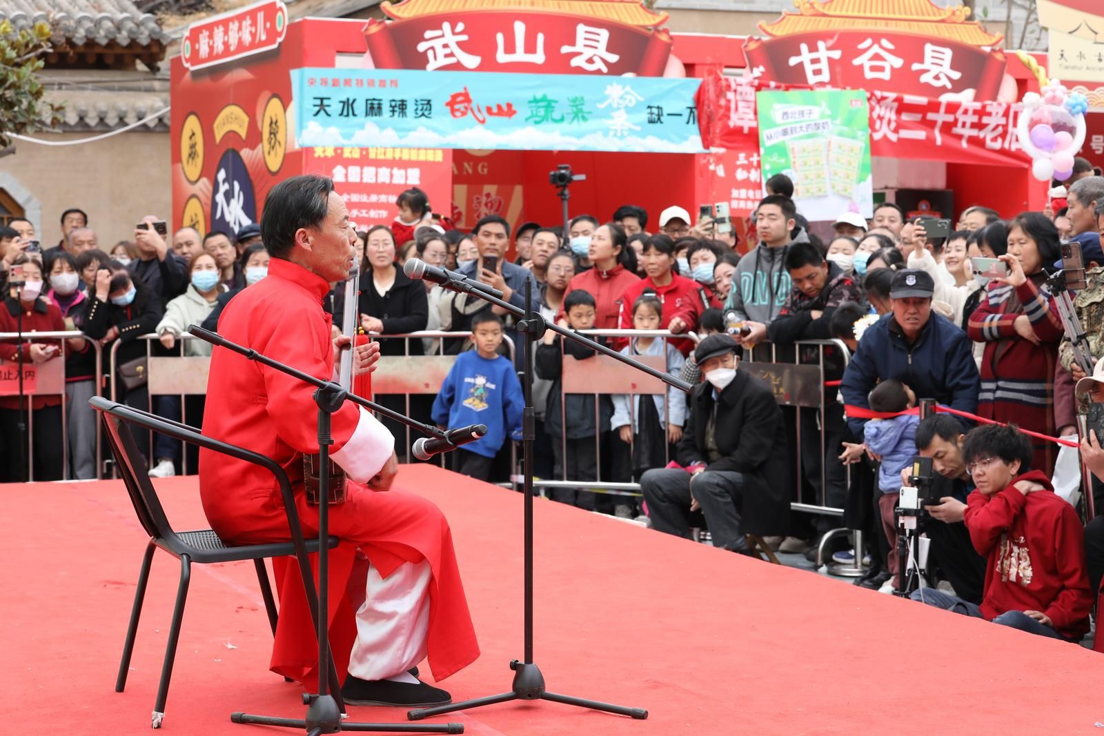 非遗璀璨耀武威,古韵今风传龙城。在“天马故乡牵手羲皇故里共赴美食之约”惠民宣传推介活动现场,来自武威的攻鼓子、贤孝、西夏泥活字印刷、剪纸、华锐藏族民歌等非遗展演,吸引广大天水市民和各地游客纷纷驻足观看。