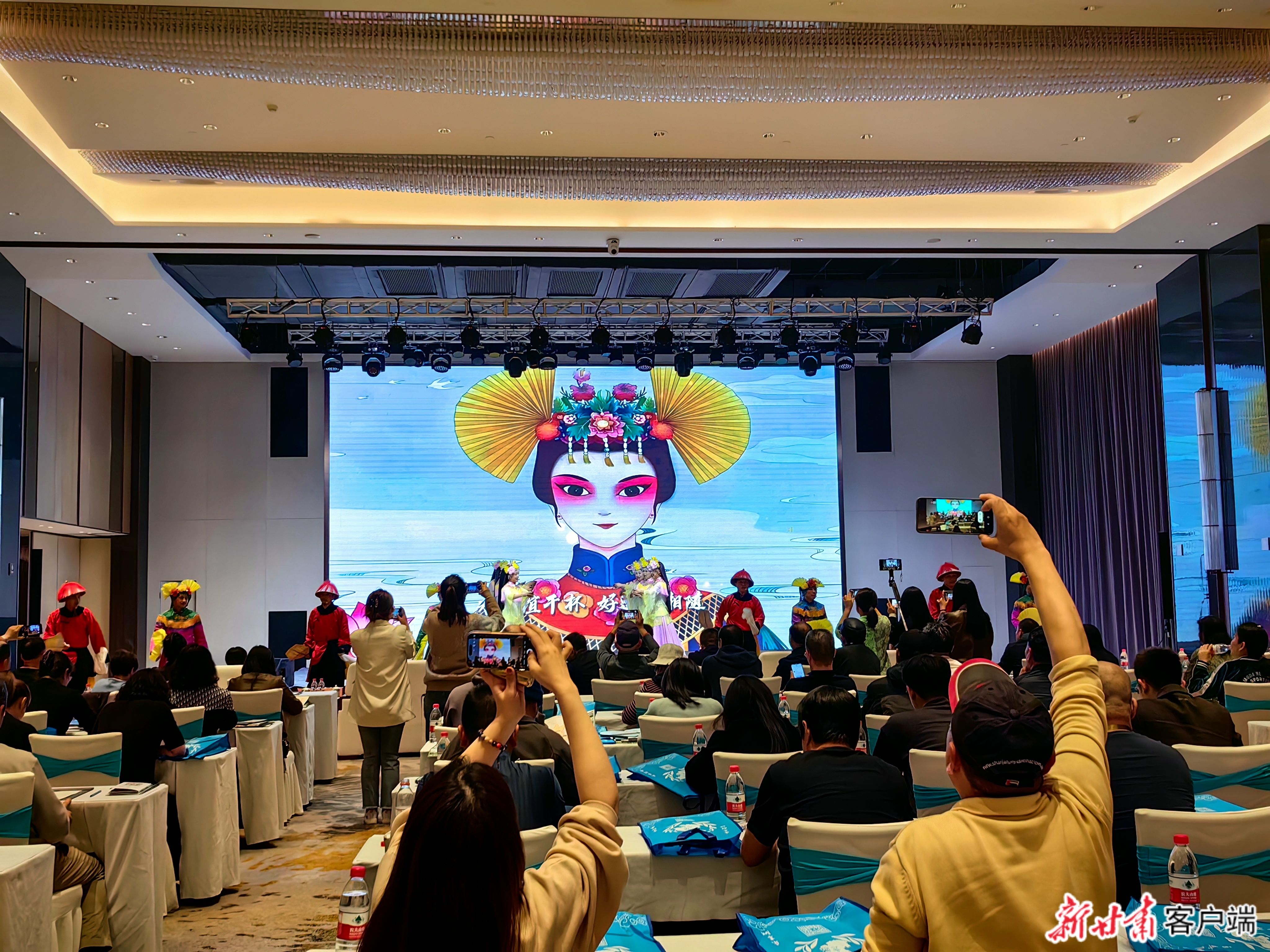 推介会上的陇南特色演艺节目吸引现场嘉宾用手机记录留念。