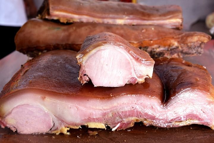 陇右一带的腊肉,不再是非熏不可。定西市陇西县的腊肉最为知名。《陇西腊肉》作者陈耀尊说,当地腊肉经过腌制、风干后就可以蒸煮。煮熟的腊肉晶莹剔透,瘦而不柴,肥而不腻,香味十足。