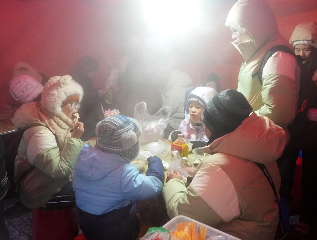 2024年1月,在哈尔滨红专街早市,来自广州的游客在品尝粘豆包(1月22日摄)。 新华社记者 王毓国 摄
