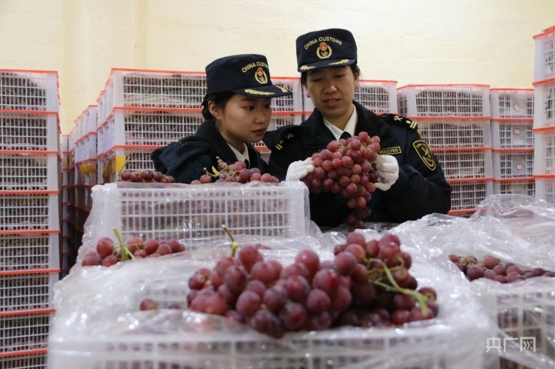 敦煌机场海关关员监管敦煌葡萄出口(央广网发 赵冠宏 摄)
