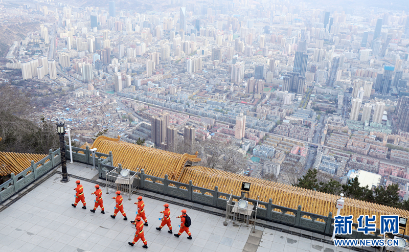 森林消防队员在兰山景区排查火险隐患、引导游客注意森林防火。