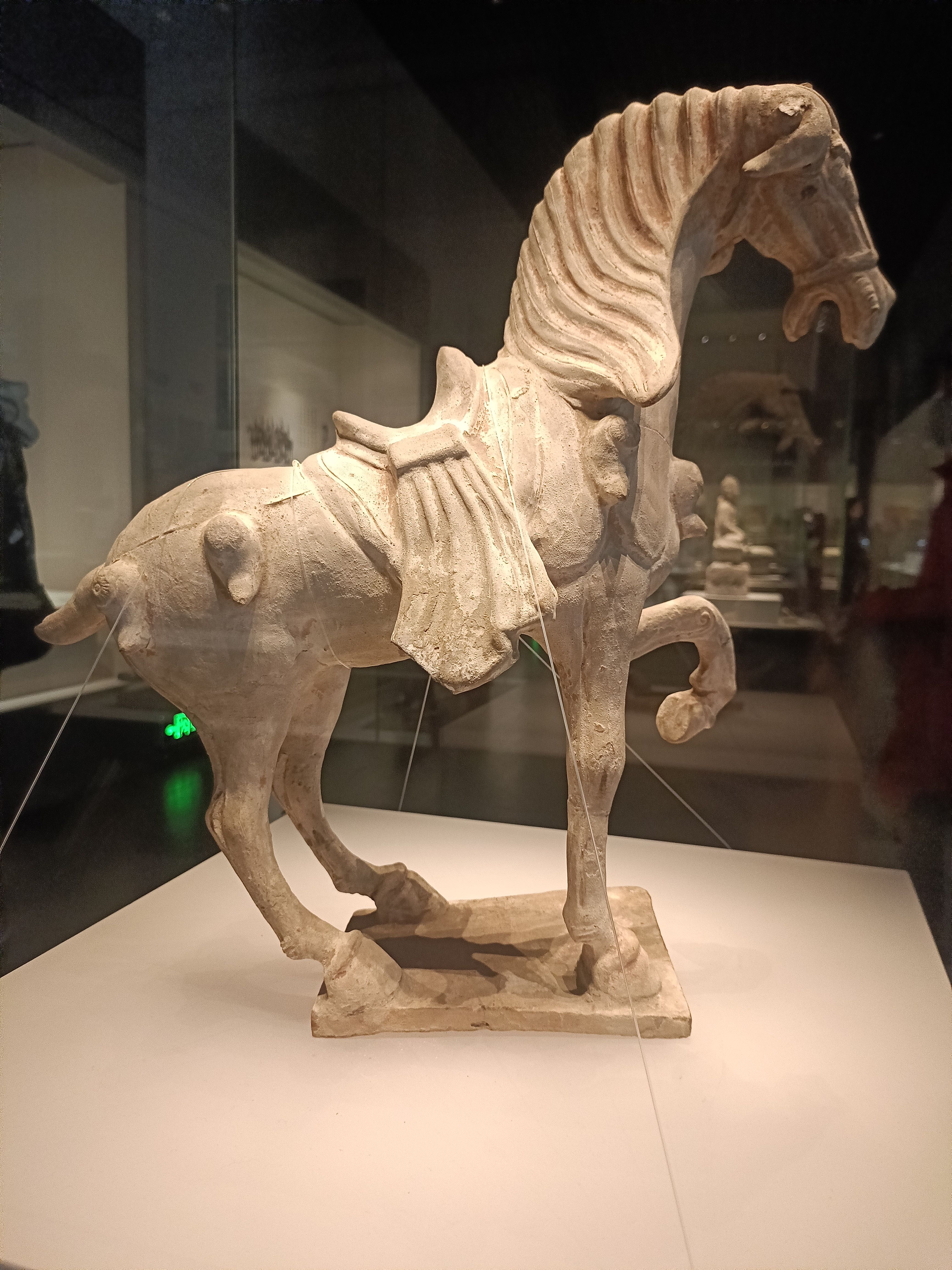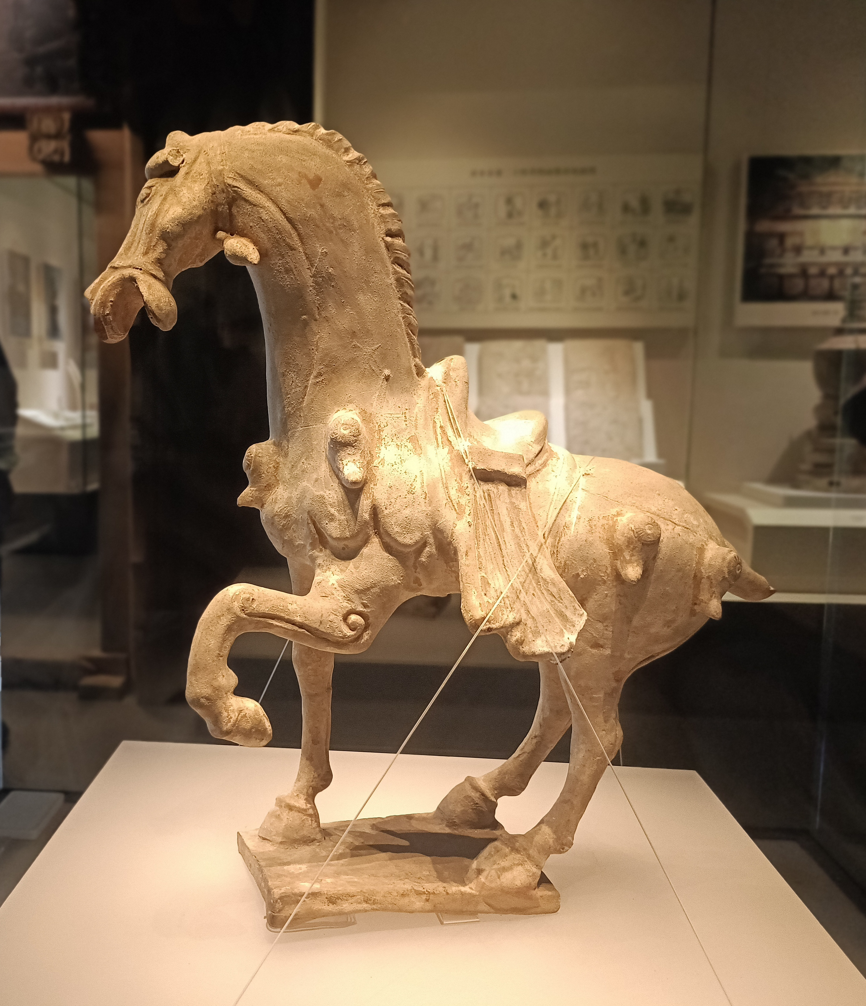 现藏于天水市博物馆的彩绘陶舞马为唐代珍品,属国家一级文物。