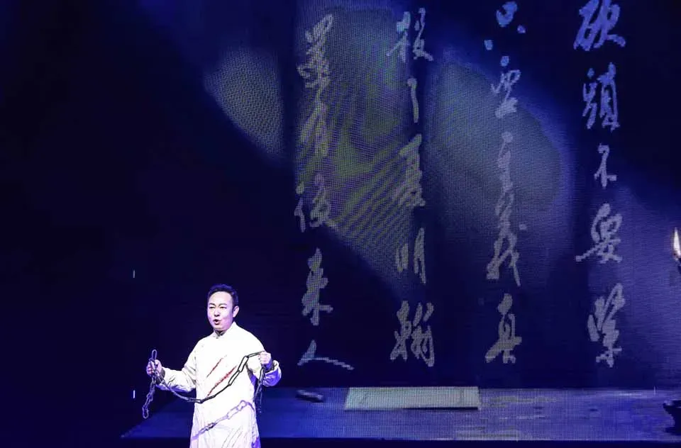 3月28日,甘州区演会中心内清明诗会隆重举行,甘州区高金城烈士纪念馆工作人员向观众朗诵革命先烈夏明翰撰写的《就义诗》里的诗句。