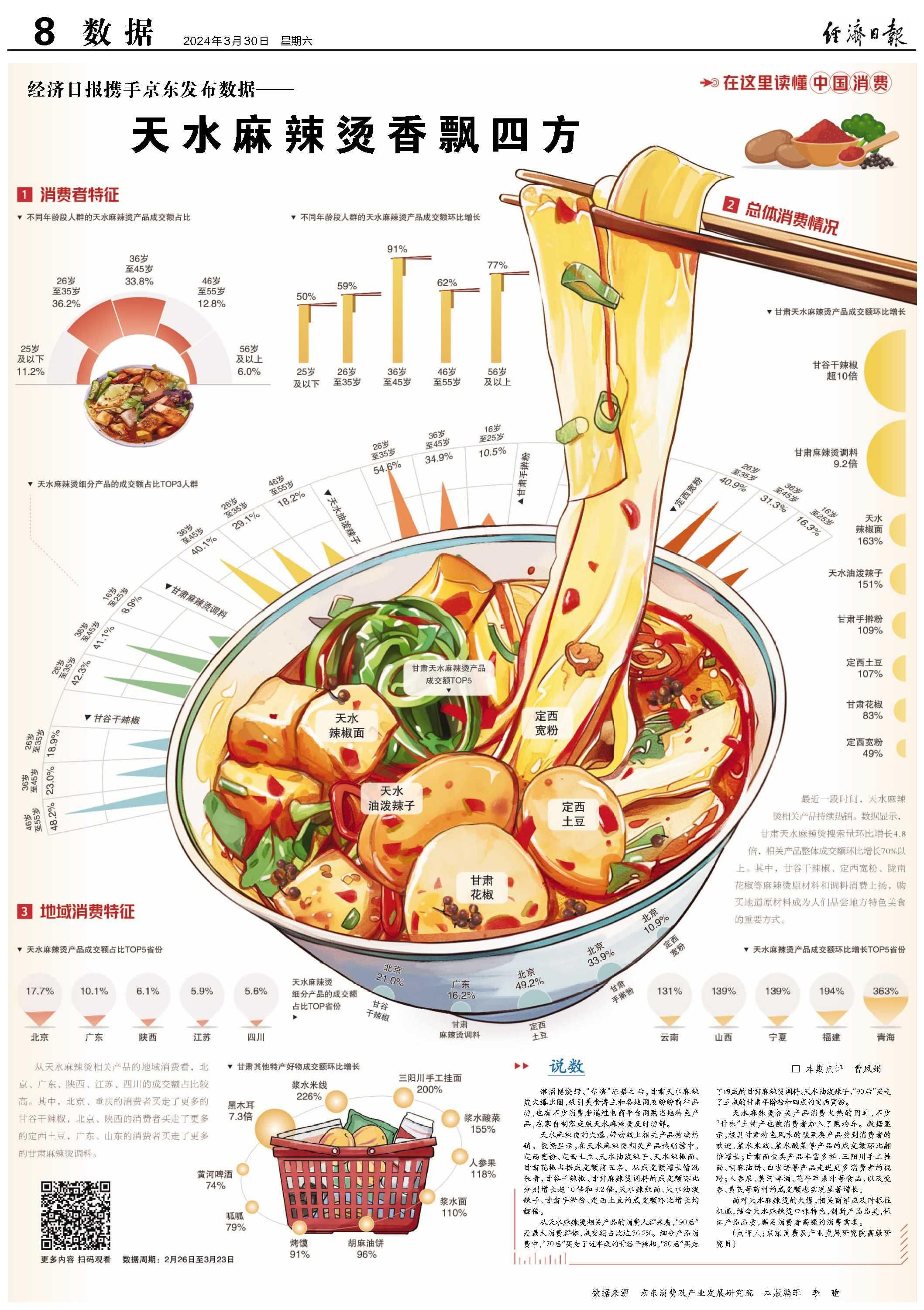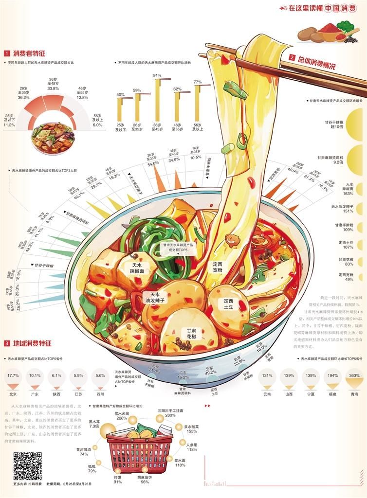 继淄博烧烤、“尔滨”冻梨之后,甘肃天水麻辣烫火爆出圈,吸引美食博主和各地网友纷纷前往品尝,也有不少消费者通过电商平台网购当地特色产品,在家自制家庭版天水麻辣烫及时尝鲜。