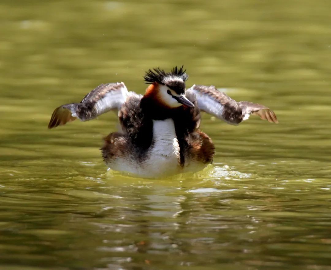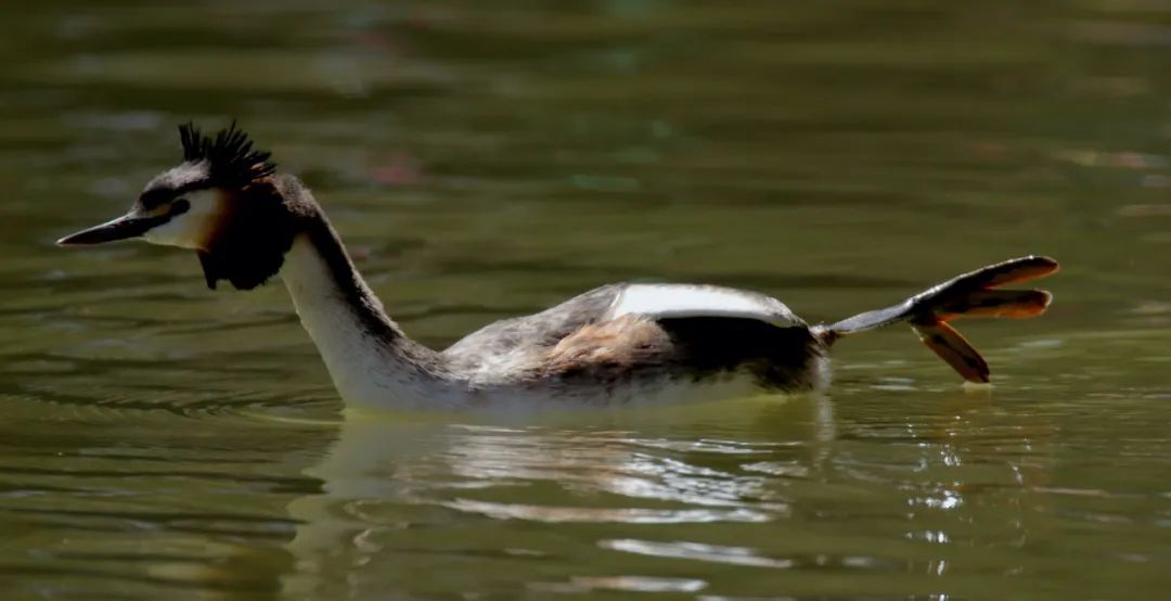 在国际爱鸟日到来之际,国家二级保护动物凤头鸊鷉(音pì tī)现身平凉柳湖。