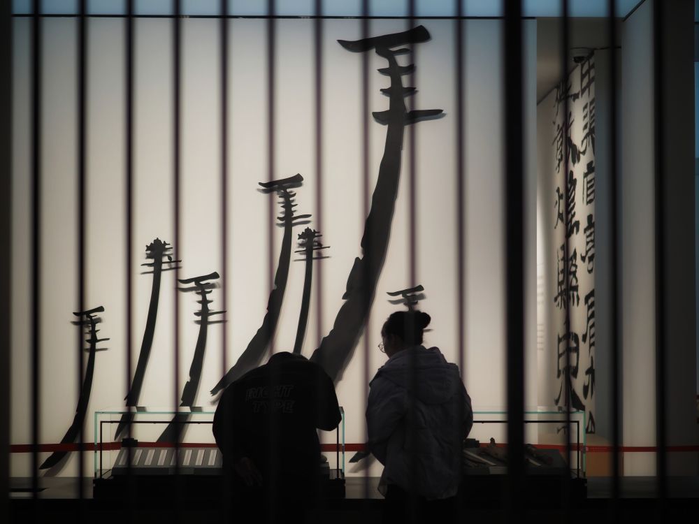 3月10日,游客在甘肃简牍博物馆观看展品。新华社记者赵宇摄