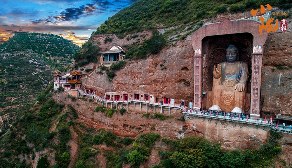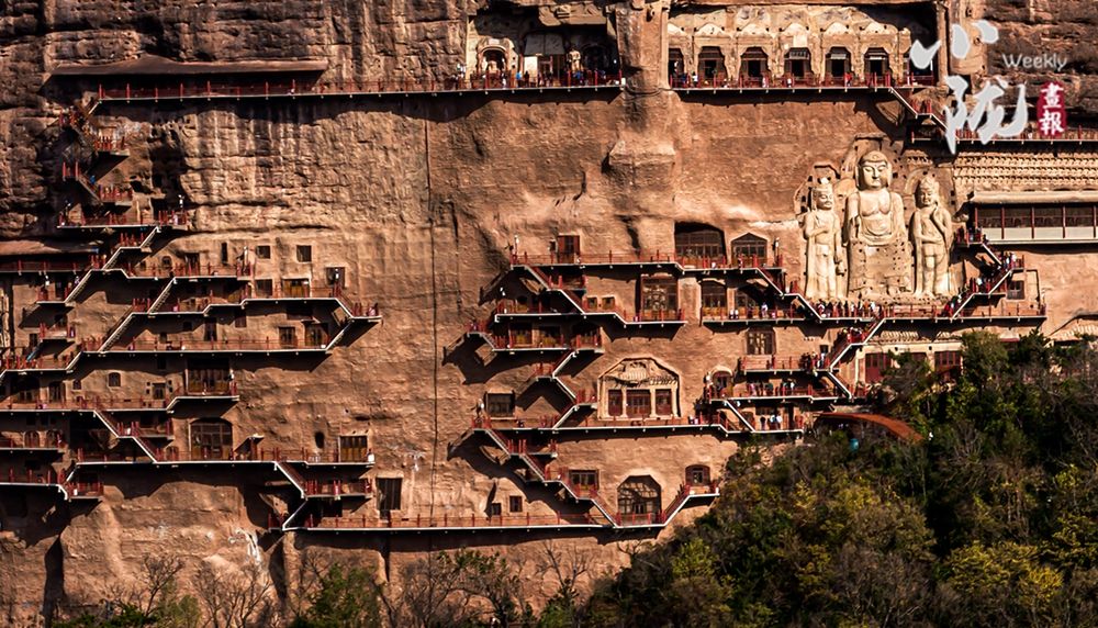 麦积山石窟始建于一千五百多年前,大多在二十到八十米高的悬崖绝壁上开凿,层层相叠,密如蜂巢。石窟内壁雕刻着大量佛像和壁画,造型精美艺术价值极高,被誉为“东方塑像馆”。