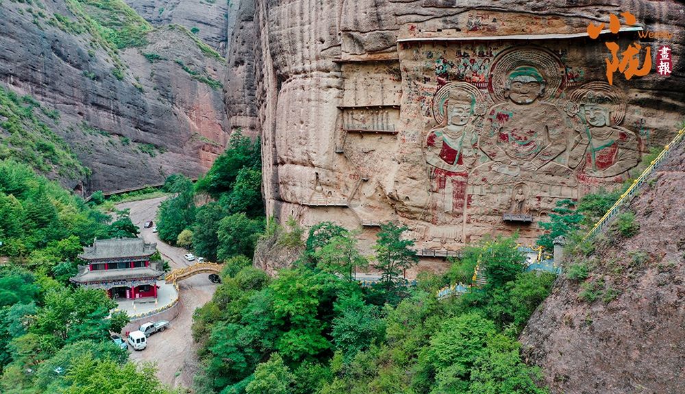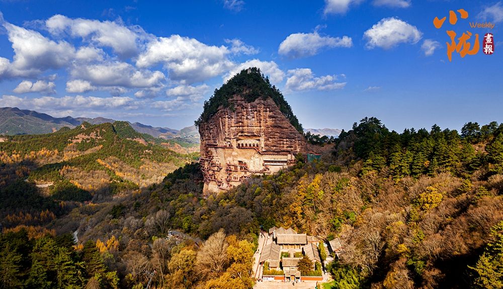 麦积山石窟因山崖一峰突兀挺立,拔地而起,犹如农家麦垛,故名麦积山。悬崖绝壁上雕凿着1600余年来的209个洞窟7866身泥塑石雕及1300多平米壁画,为中国四大石窟之一。