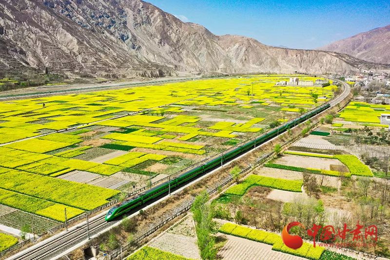 图为开往陇南的列车穿过油菜花海(王光辉摄)