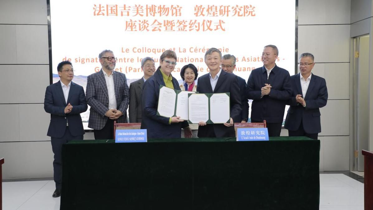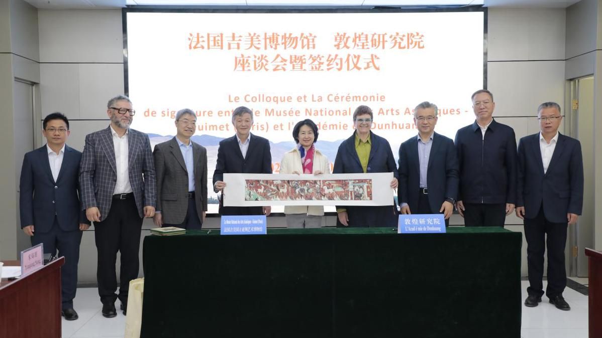 3月30日,法国吉美博物馆、敦煌研究院座谈会暨签约仪式在甘肃省敦煌市敦煌研究院举行。