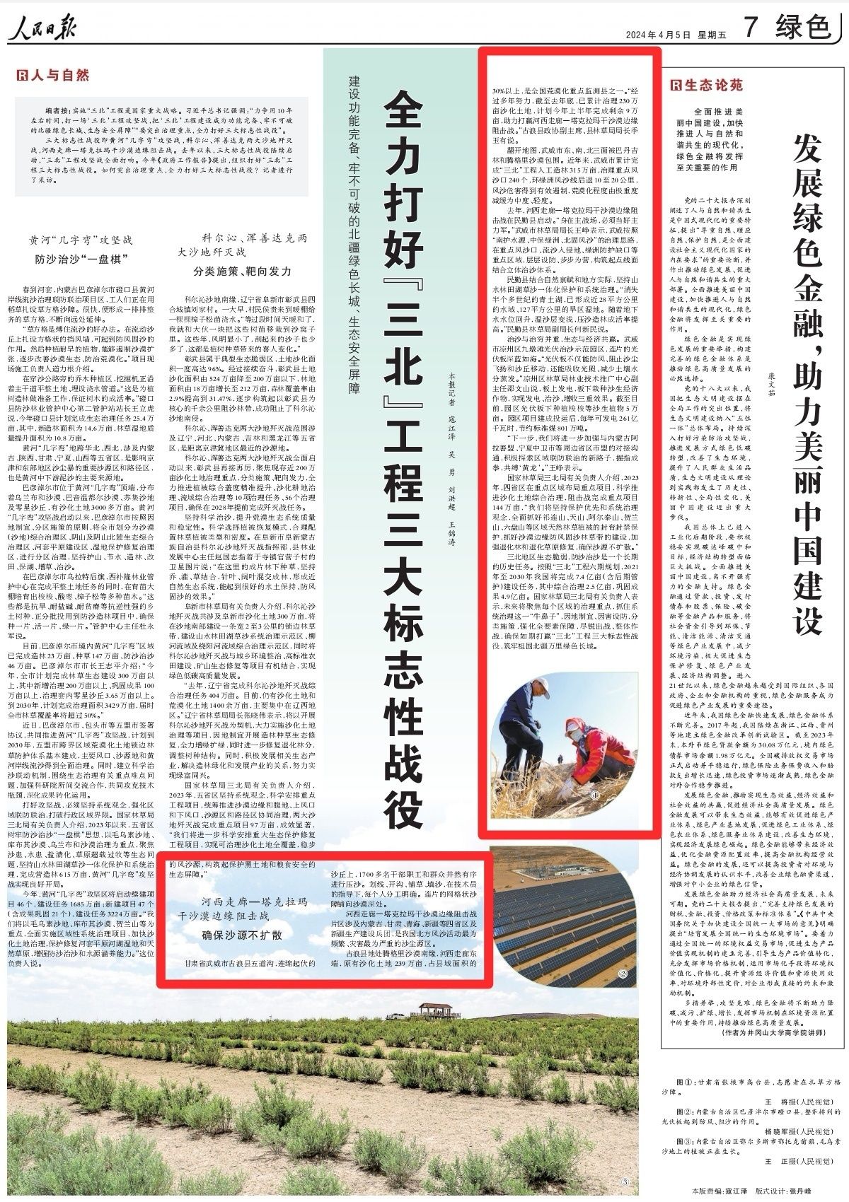 编者按:实施“三北”工程是国家重大战略。习近平总书记强调:“力争用10年左右时间,打一场‘三北’工程攻坚战,把‘三北’工程建设成为功能完备、牢不可破的北疆绿色长城、生态安全屏障”“要突出治理重点,全力打好三大标志性战役”。