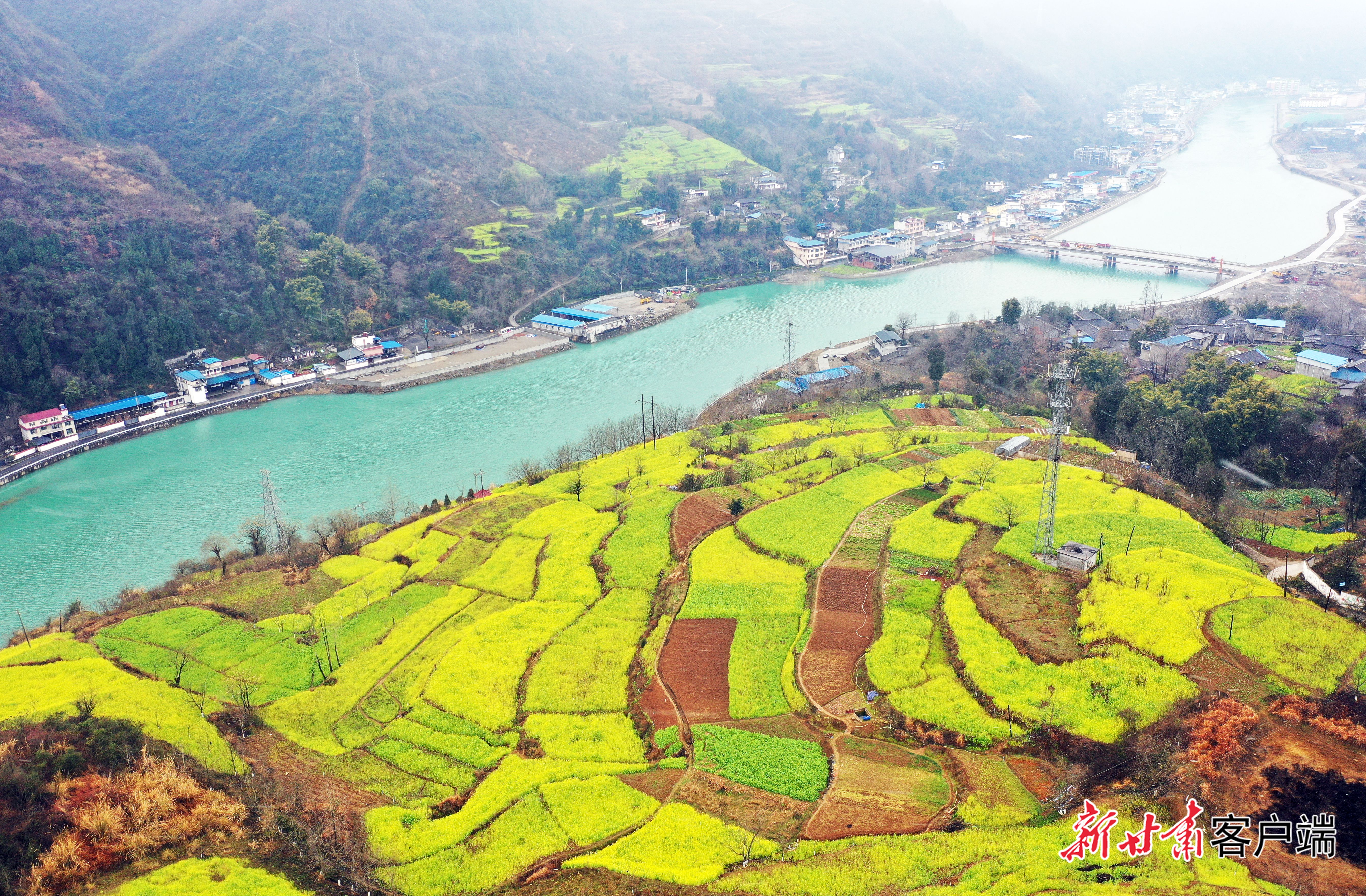 △初春,陇南市文县碧口镇白龙江沿岸油菜花盛开,碧绿的江水与金黄的油菜花相互映衬。甘肃最早的春天在这里开始。新甘肃·甘肃日报通讯员 冉创昌