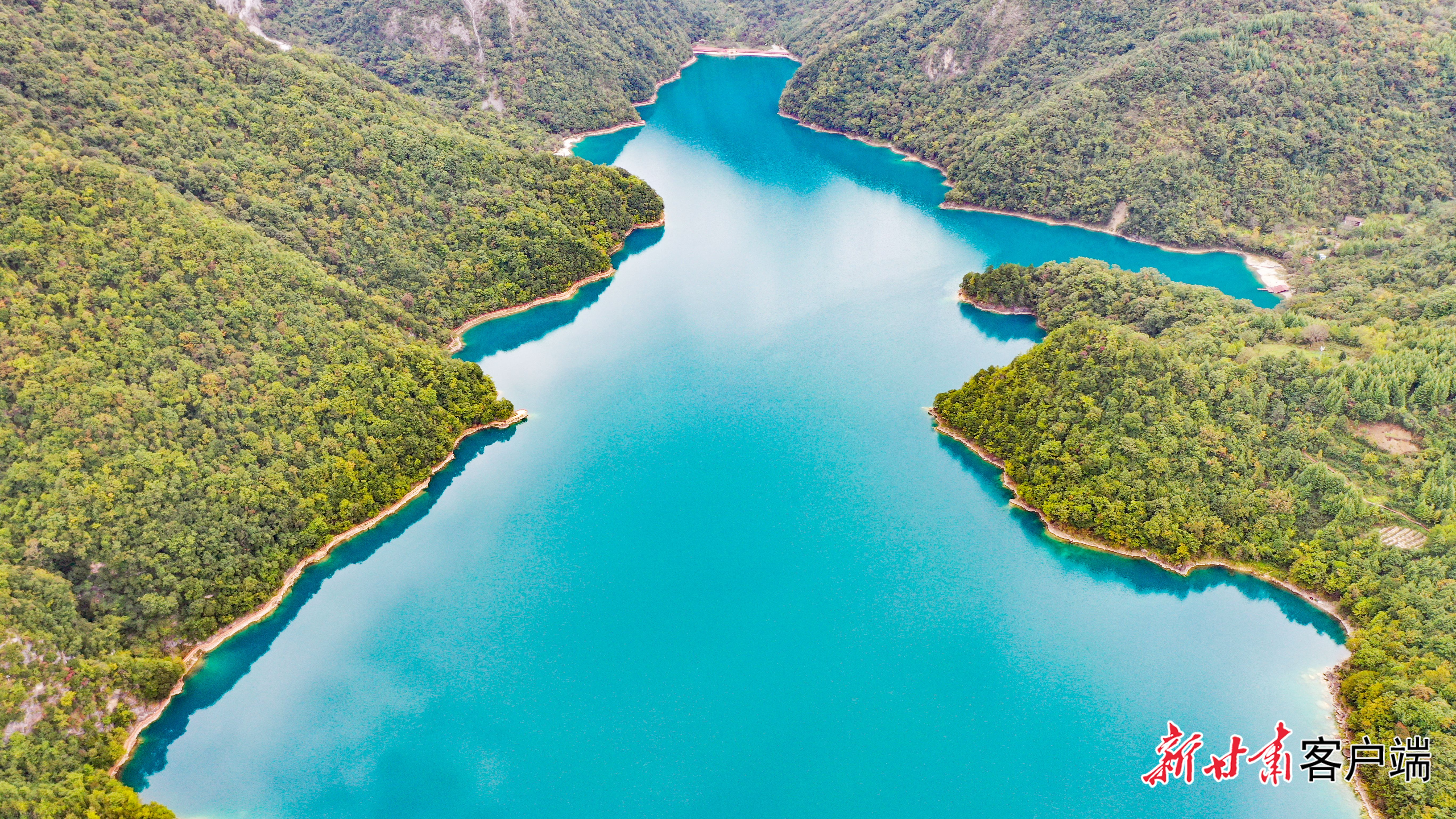 △位于陇南市文县的天池景区碧水蓝天、森林环抱,犹如一颗“蓝宝石”镶嵌在崇山峻岭之间。新甘肃·甘肃日报记者 丁凯
