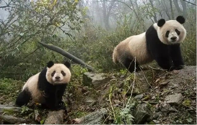 △红外相机拍摄的甘肃野生大熊猫母子活动画面。图片/网络