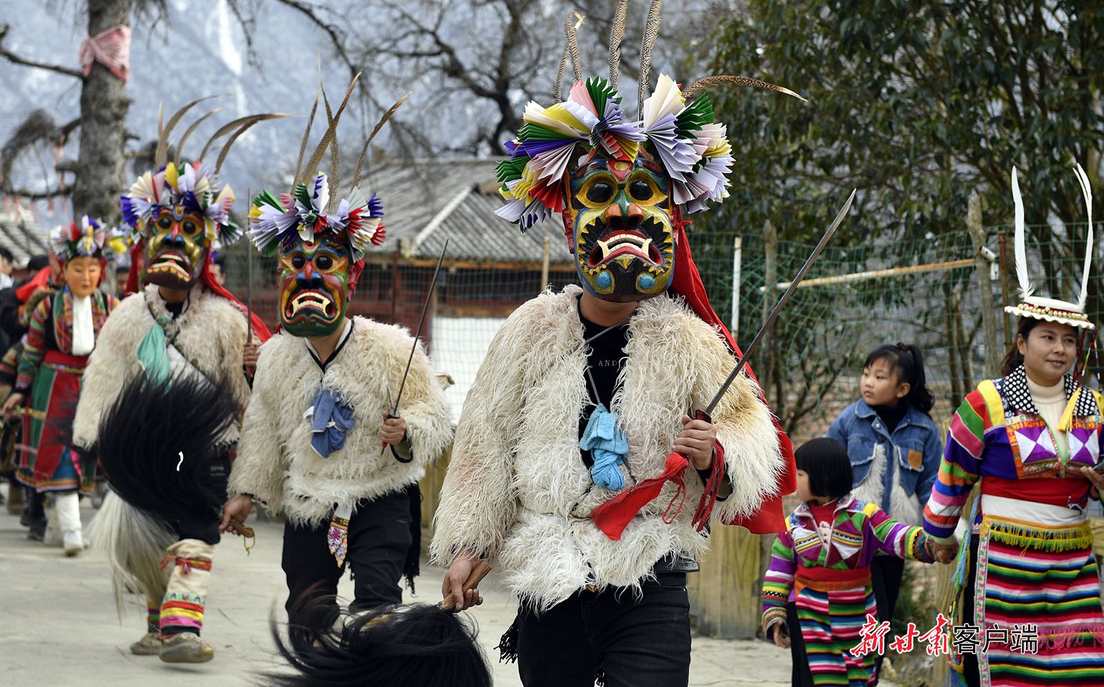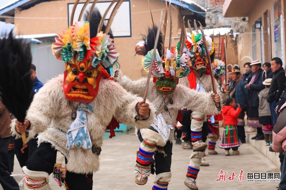 △2024年2月23日,陇南市文县铁楼藏族乡,白马藏族用自己独特的民俗跳“池哥昼”,喜迎元宵佳节。新甘肃·每日甘肃网通讯员 陈坤 摄影报道