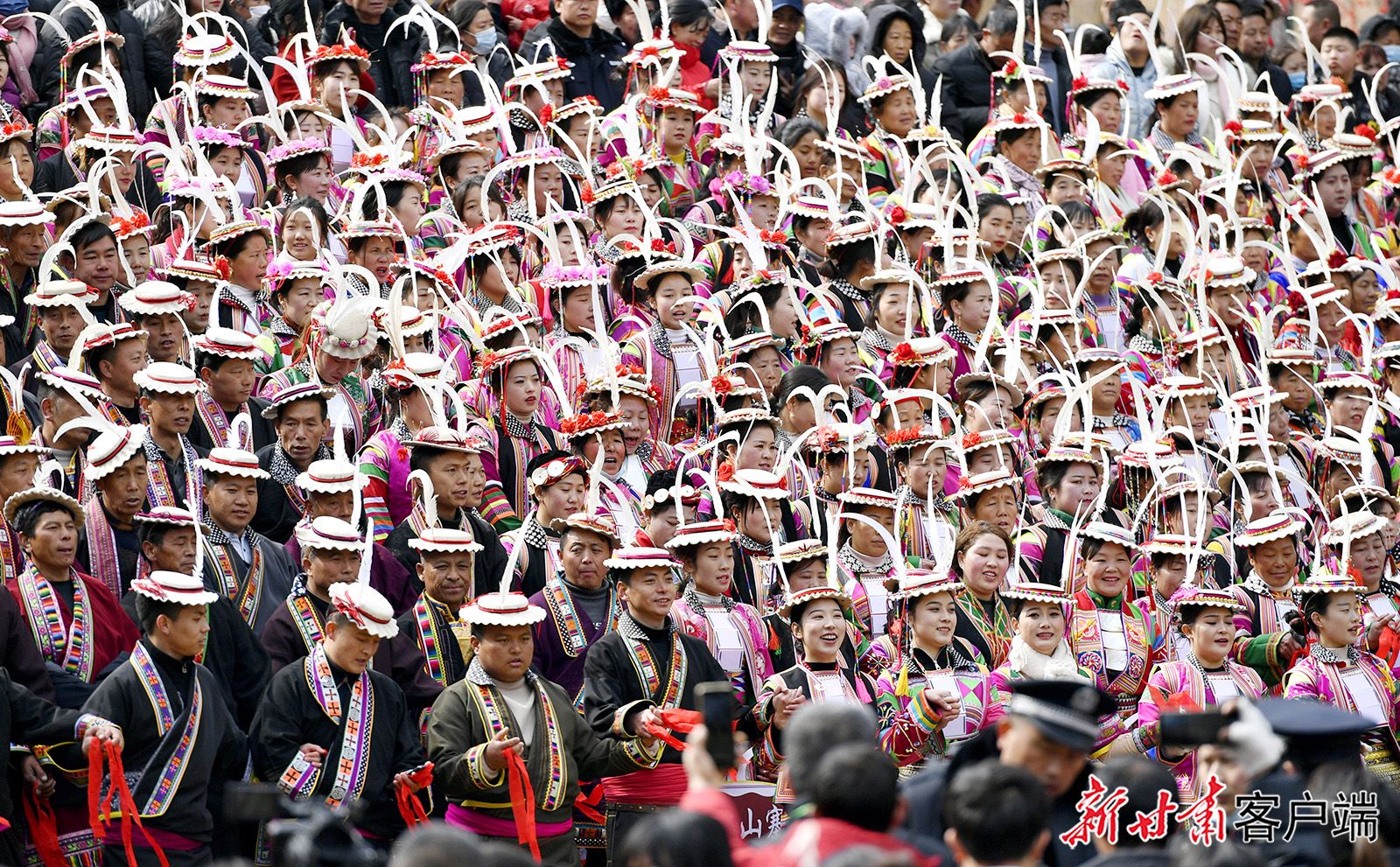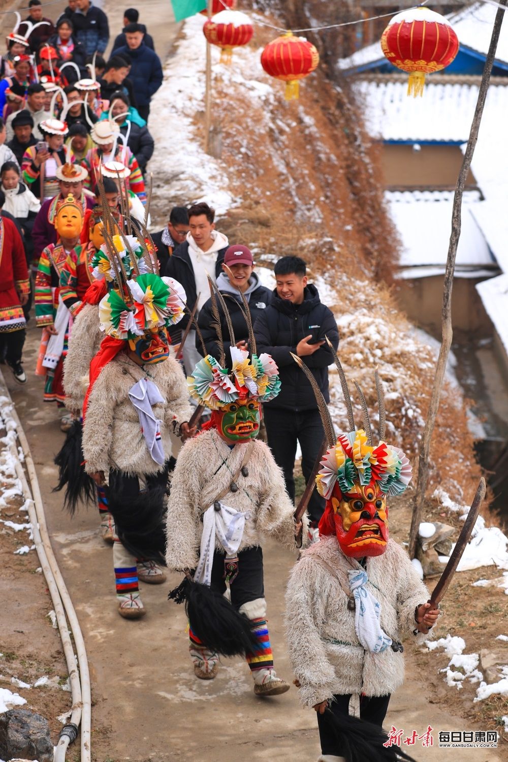 △2024年2月24日,在甘肃省陇南市文县铁楼乡,当地白马人用欢歌庆祝元宵佳节。新甘肃·甘肃日报通讯员 冉创昌